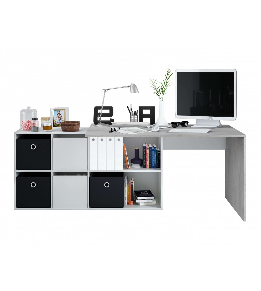 Escritorio reversible con buc de 2 puertas y 4 huecos. Posibilidad de que la mesa sea rinconera.