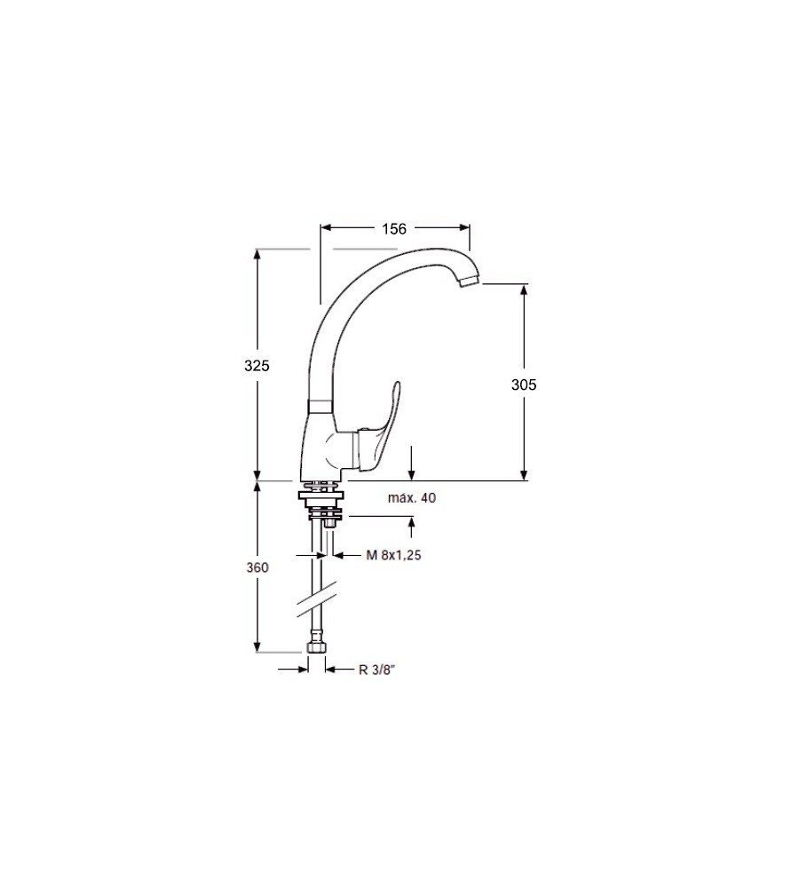 Monomando Fregadero Vertical C/Tubo