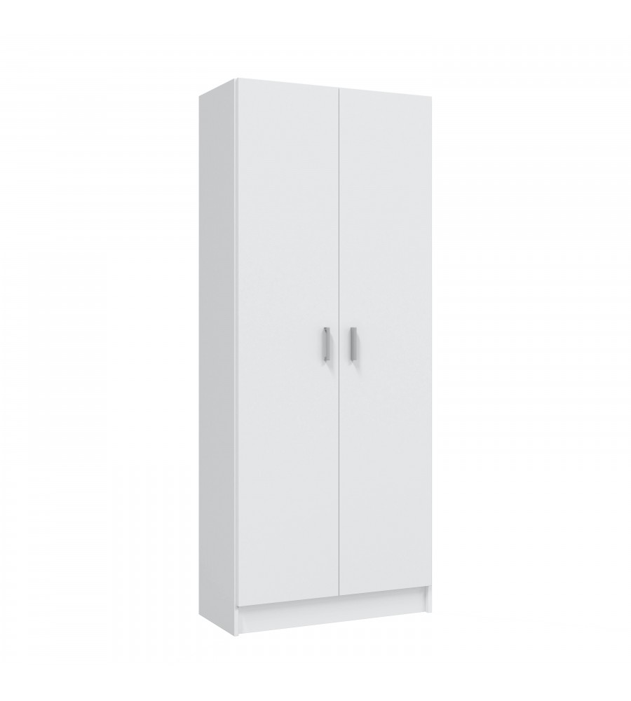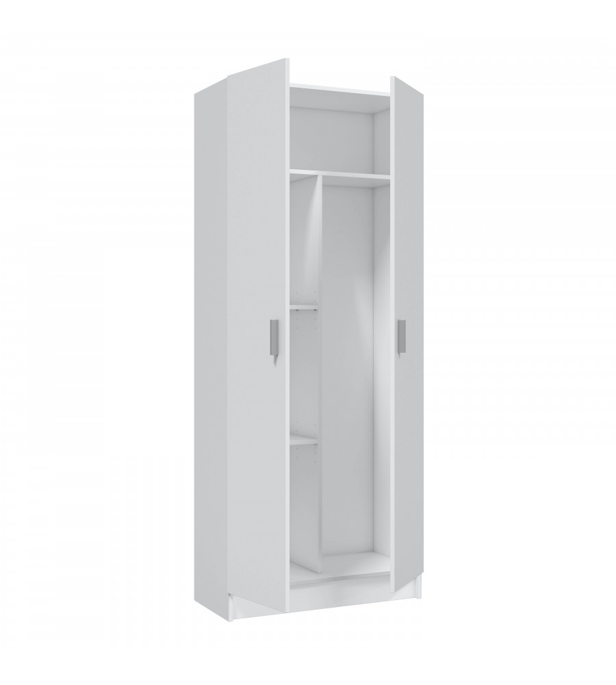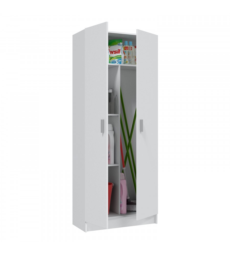 Armario escobero de 2 puertas con 2 estantes regulables en altura.