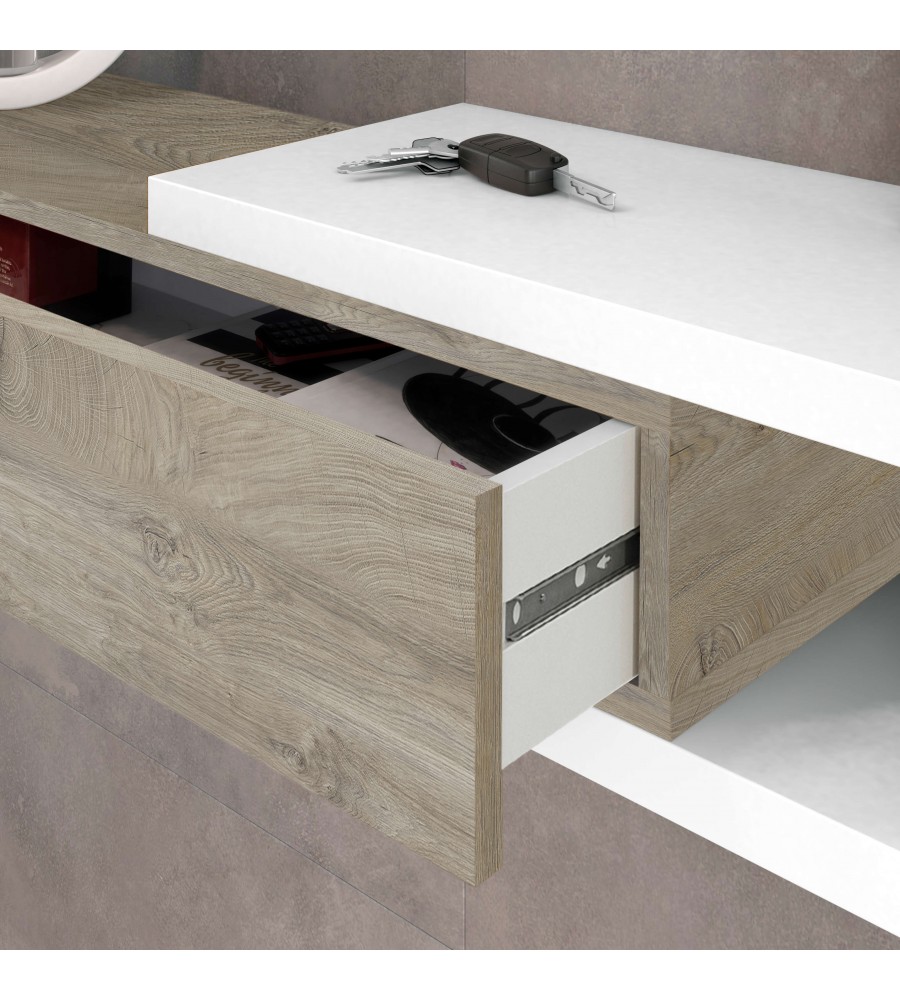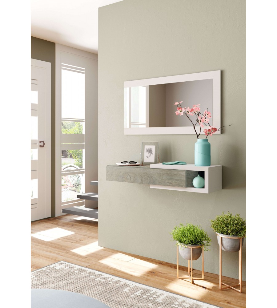 Recibidor 1 cajón + espejo Roble Alaska / Blanco Artik