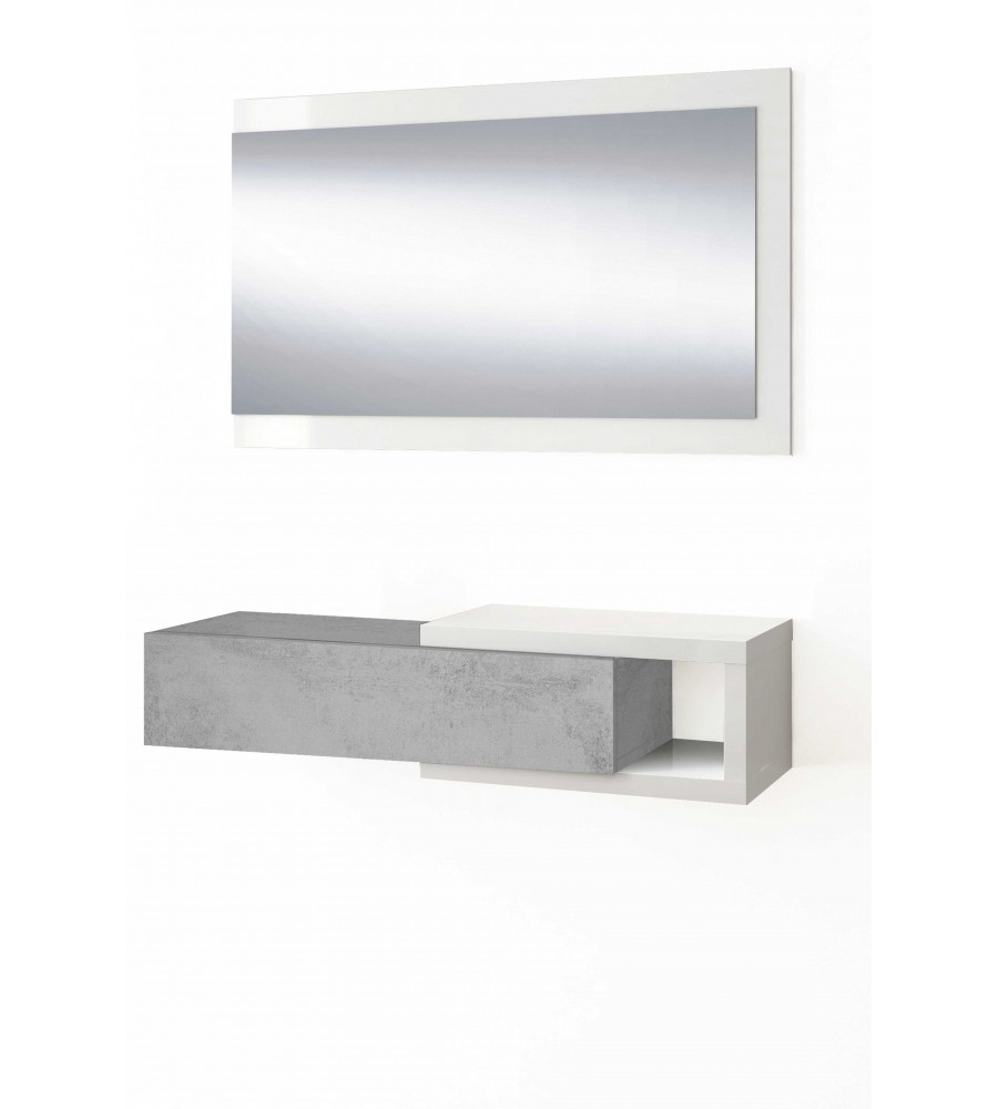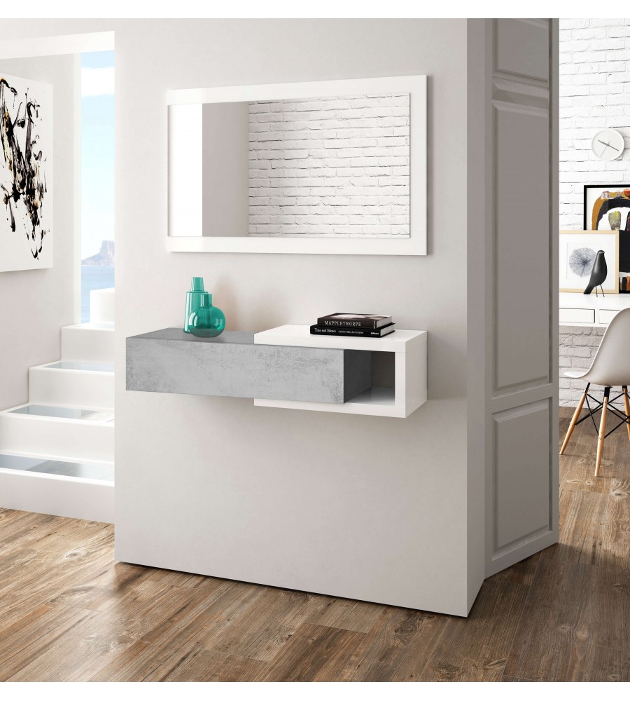 Recibidor 1 cajón + espejo Blanco Artik / Cemento