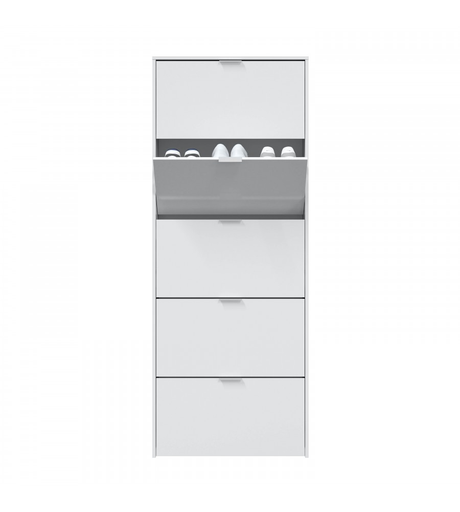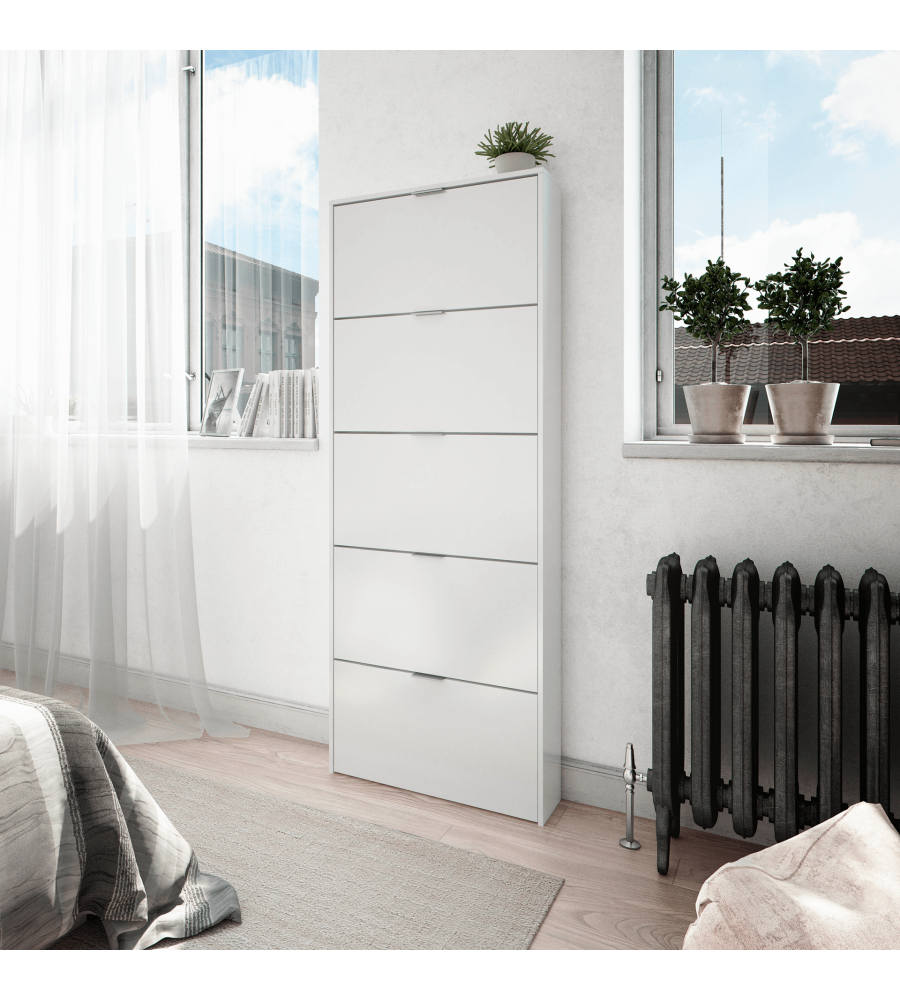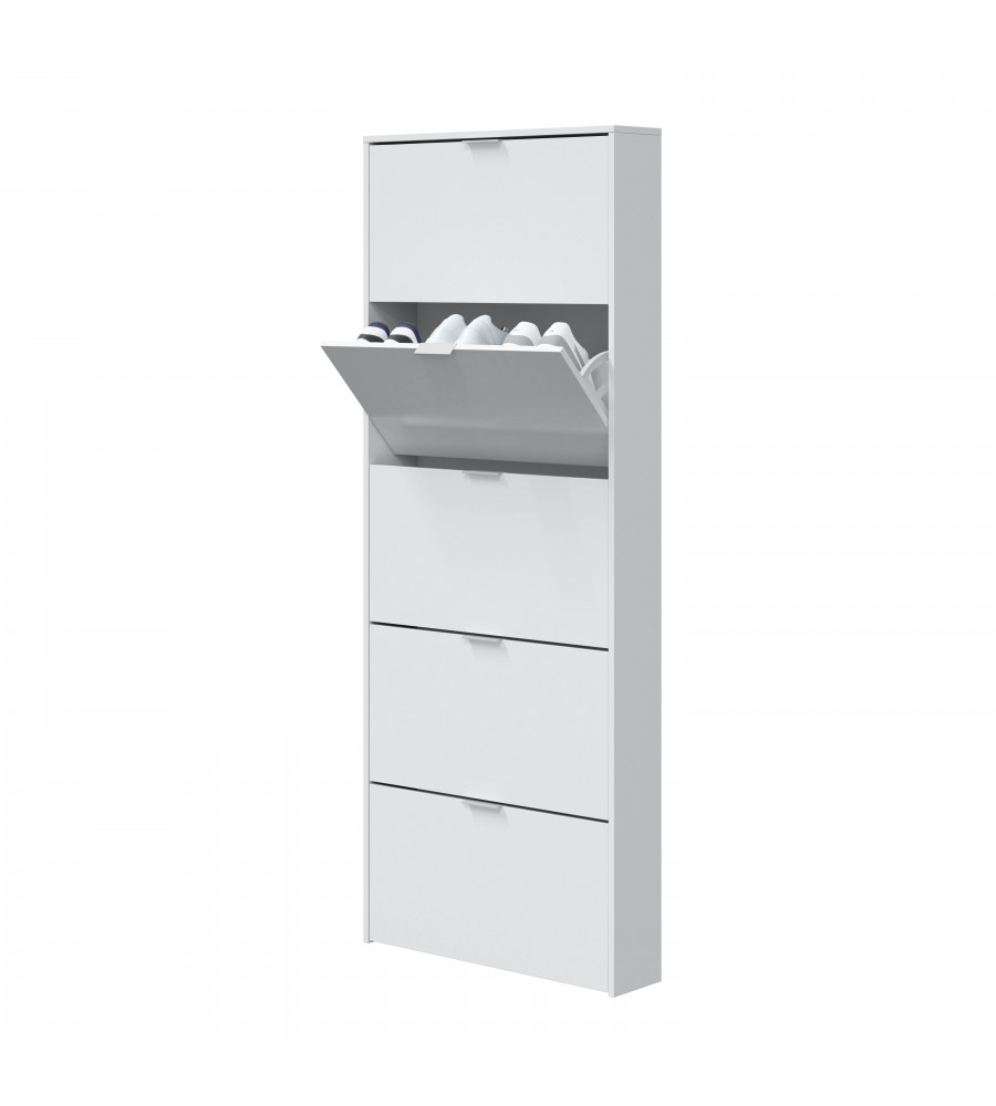 Zapatero de 5 puertas abatibles con capacidad de 15 pares de zapatos aproximadamente.